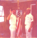 This was the Boatswains mate presenting me with the whistle that retired me. That whistle is encased in my shadow box.