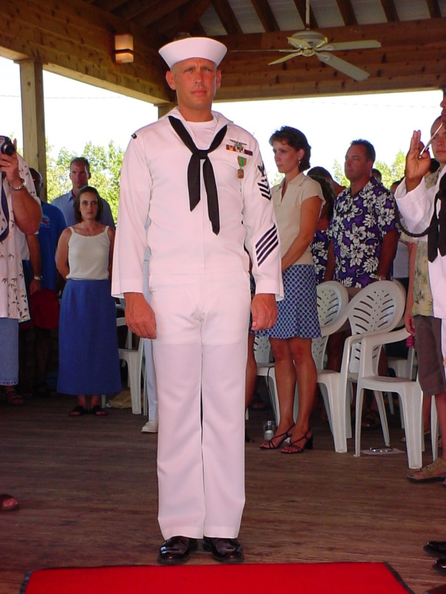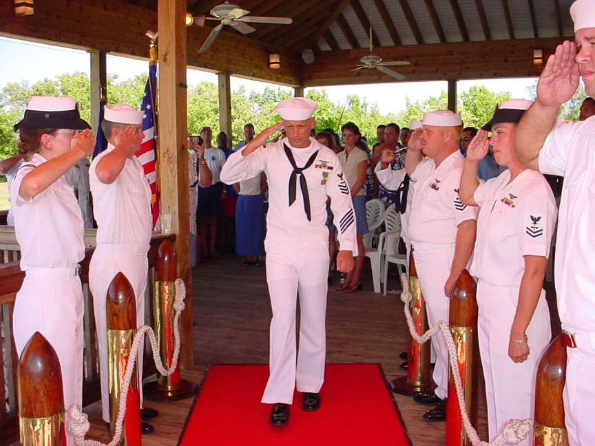 This is the exact moment my Navy career on active duty ended. You can see the boatswains mate blowing the boatswains whistle in the background to pipe me ashore. As I walk down the red carpet, that signifies walking down the gangway and going ashore at the end of a career. I think it should be noted that those 6 guys and gals lining the path were some of my best friends in the Navy and we worked side by side through thick and thin. We donated a lot of blood, sweat and tears over the years and we probably spent more time together, away from home than we did with our families.The picture doesn’t show that.