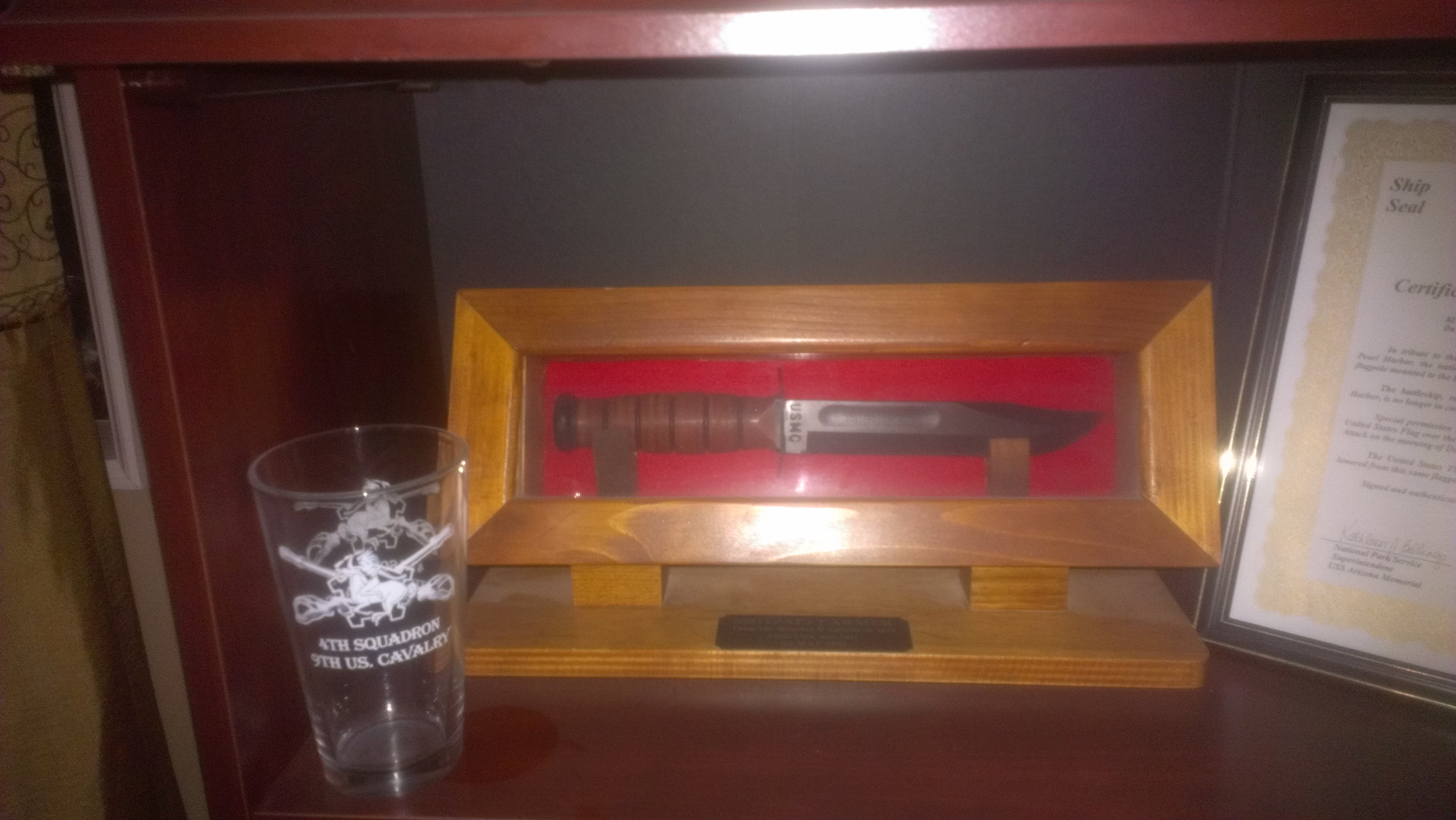 The flag in the shadow box was presented to me at the ceremony. The flag was flown over the USS Arizona and our state capitol before being encased in the shadow box.