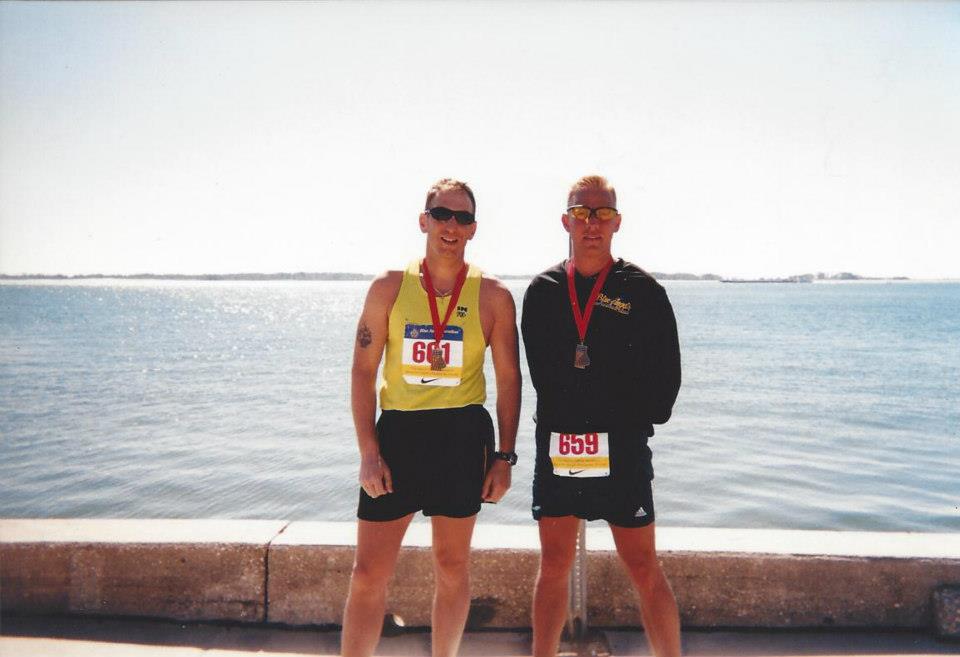 This was my buddy Rob and I after the Blue Angel Marathon in Pensacola, Fla. Feb. 2002. We took first place in the military team branch competition and dethroned the Kansas National Guard team who had owned the competition for years. It was a very happy day for our team. Our team names were put on a trophy that is on display at Naval Station Pensacola.