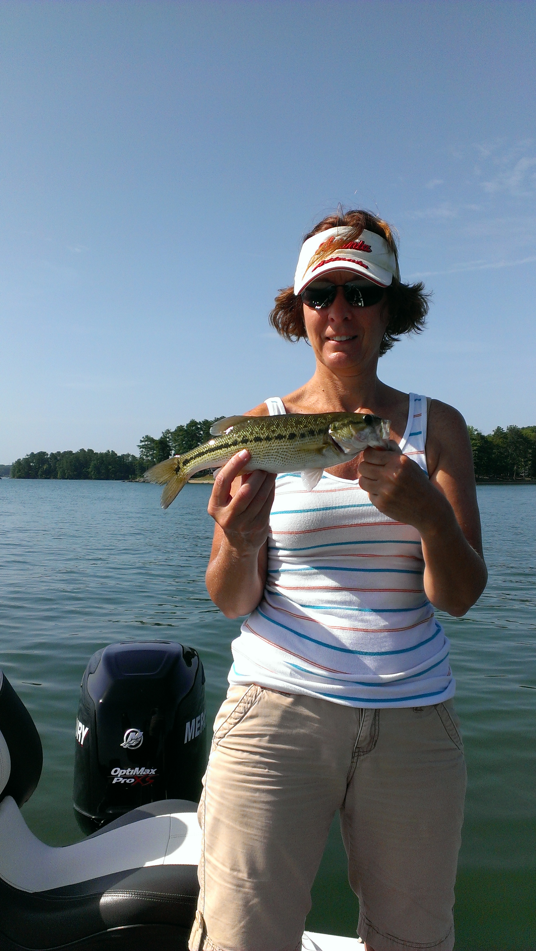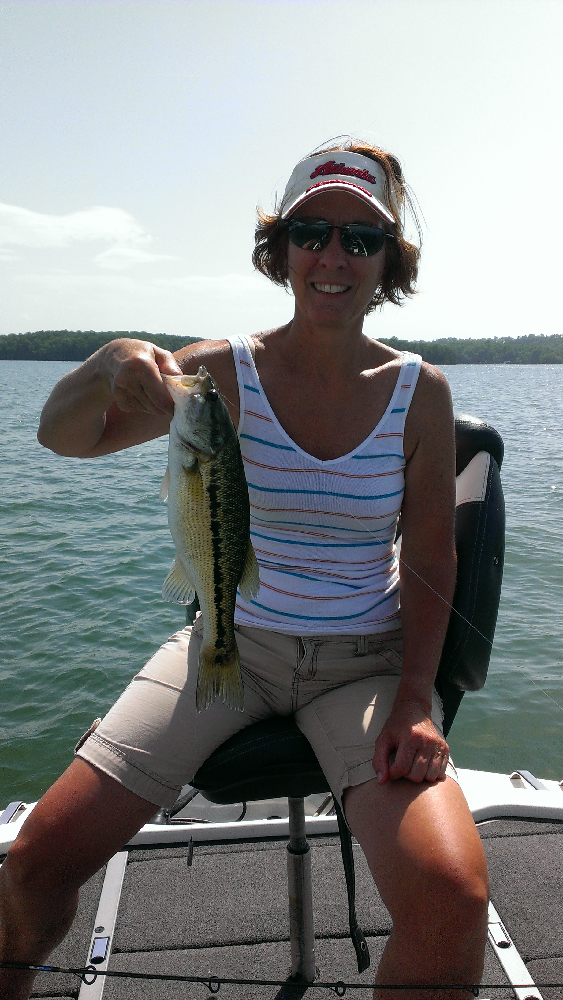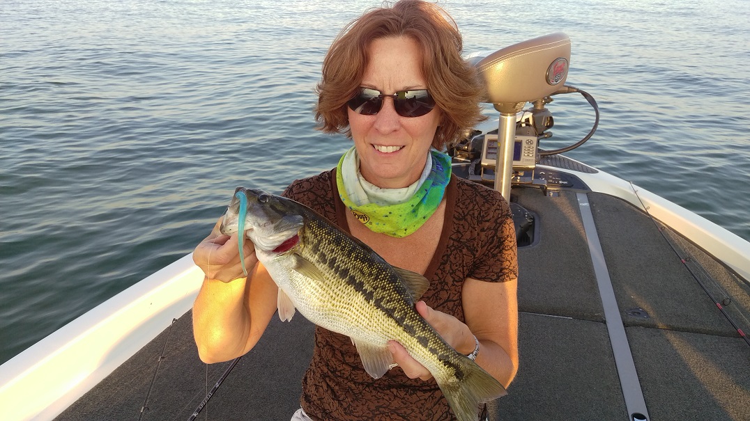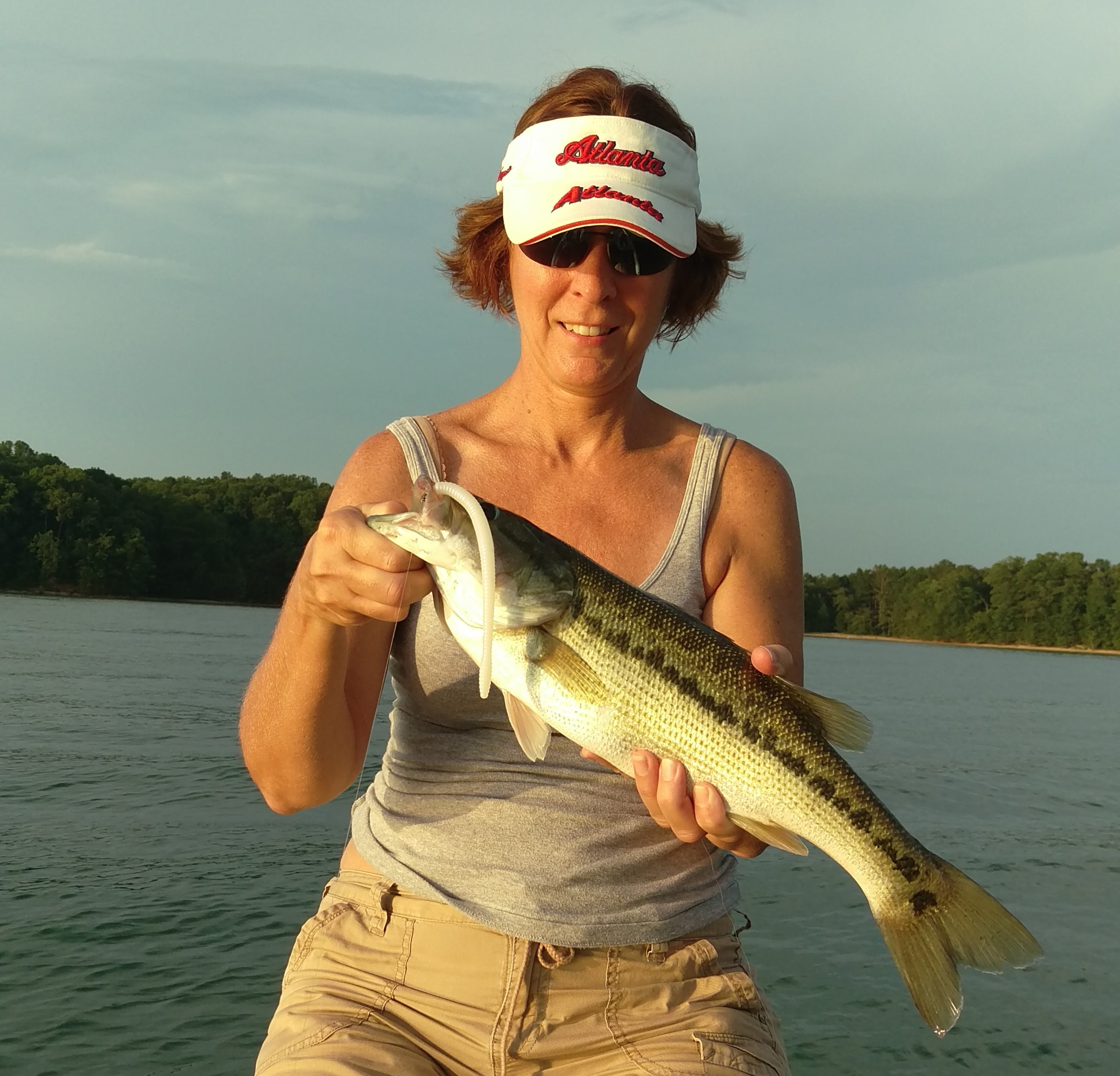 I‘m thinking…and hoping that we have reached the apex of summer heat this month. The topwater bite has slowed to a crawl due to the rising surface temps so we’ve been concentrating on the drop shot bite of late. The drop shot is a finesse tactic and is something we’re still learning but Lisa and I have been fortunate enough to find a few fish and we’ve had some good success with it this summer. I first started exploring the drop shot tactic for spotted bass on Lake Lanier years ago after reading a few local fishing reports from a fella that goes by the name of “Lanier Jim”. There’s no doubt that he’s the best on Lanier at catching spotted bass in the summer months on the drop shot rig and after reading his reports and seeing some of his pictures I was intrigued.