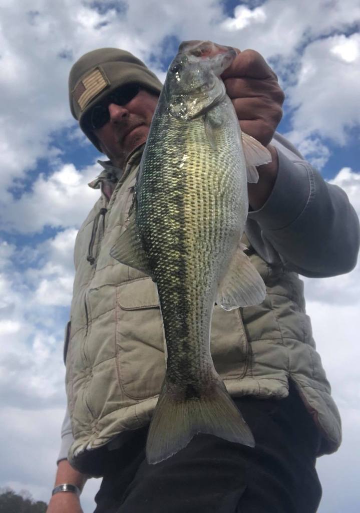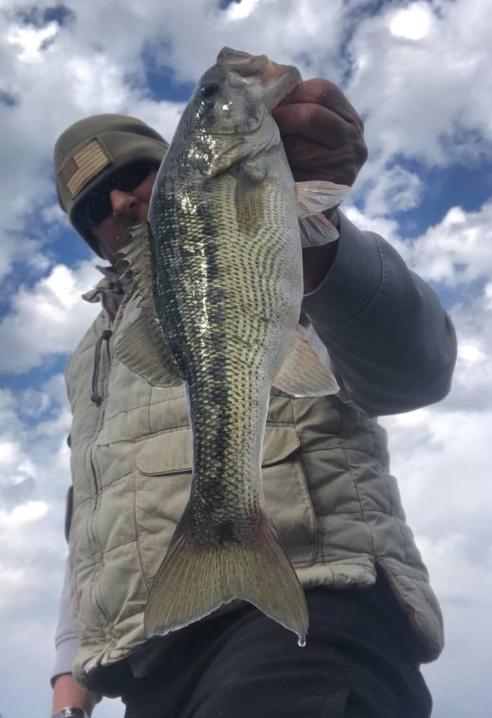 Since my bum shoulder is only good for a few hours of fishing I spent the rest of the time just hitting sunny secondary points and working my way back to the house. I was back in the house by 2 pm and all totaled I had caught 7 fish, all of which were keepers. The water temps were around 47-48 at 10am and the wind was minimal and out of the west.