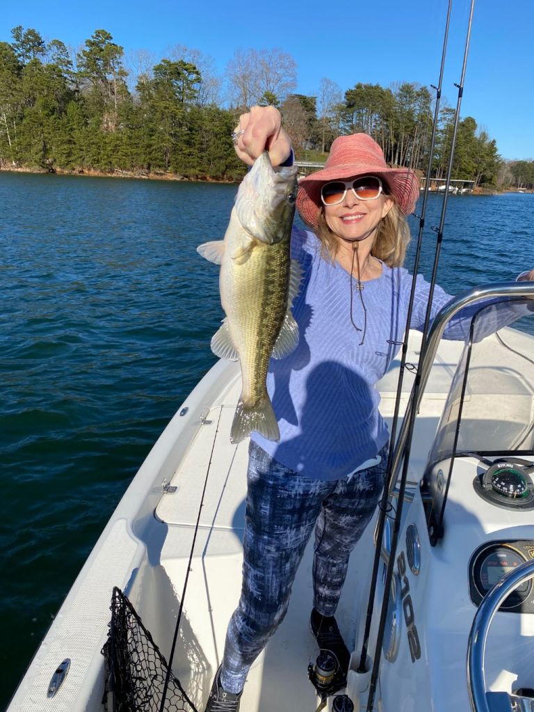 Yesterday and the day before were a couple of those early spring days with the temps in the upper 60’s and a little wind out on the lake. Normally I’d be out there slinging a crankbait around because it’s certainly crankbait season but I have yet to find a decent crankbait bite. The crankbait is working well right now and from the reports I’m getting, it sounds like it’s a good choice to have on the deck. Here’s a picture that my neighbors David and Ann sent me a few days ago. Ann caught a nice bass Thursday afternoon cranking a point in the creek with my 1.5 Shad crank.