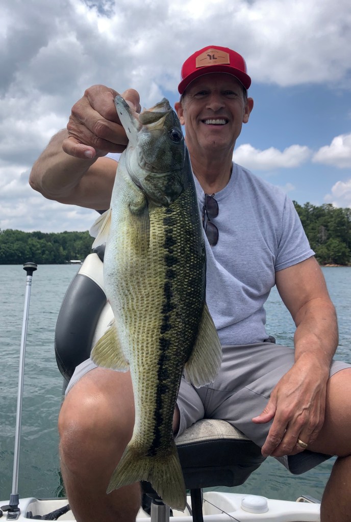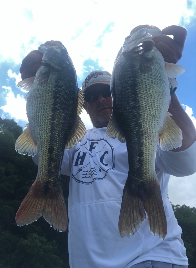 It didn’t take long till I had my first victim on a point in the creek and I was able to build on that. I just started running and gunning points and humps on my milk run and I got rewarded at every stop. My pattern was something the fish hadn’t seen lately and my hook-up ratio jumped back up where I like it. I was also able to fool some of the bigger fish with regularity again which really had me fired up. My neighbor and I had been planning a trip out on the lake and yesterday we were able to get out for a while. I had told my neighbor about my new bait and pattern so he procured a few more (all) of the baits at a local tackle shop and off we went on the milk run to chase a few bass. He had to get a little training but it didn’t take long till we were both on track and catching fish. I’m not sure how long our new pattern will last but I’m going to definitely ride this horse till the bitter end or until the summer spybait bite picks up a little more. LOL
