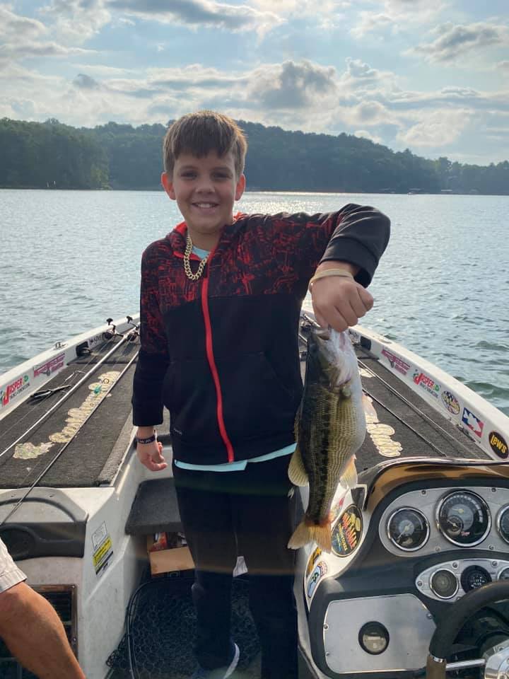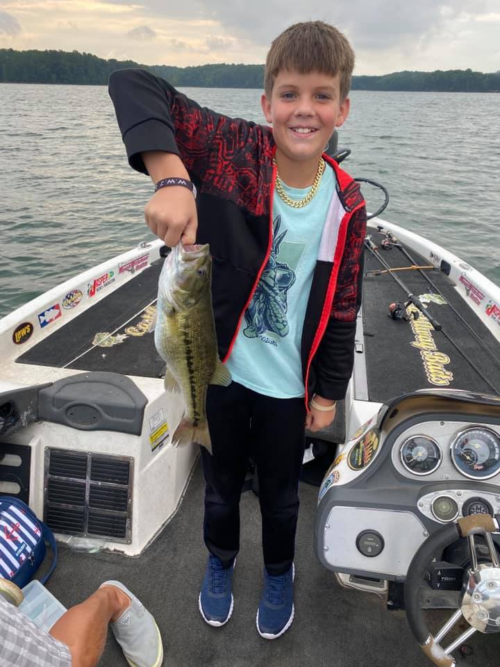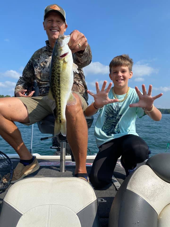 Caleb is actually looking forward to school and the start of football season. Caleb wants to be a wide receiver and has already set goals for himself as well as a workout routine for preparation. He wants to play for Auburn and later on, the nfl. We had a great time talking about football and his drafted fantasy team this year while catching fish on a very mild summer morning. The weather couldn’t have been better and I knew the fish would respond well to topwater.
