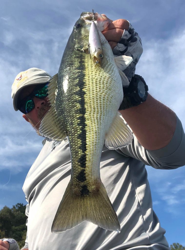 It was pretty simple this week, find the chop on top of the brush on points and humps in the creek and offshore and use the shake and bake method over and around the brush for a few nice fish. When they were actively schooling on schools of bluebacks they were so lit up they would have probably hit a cat turd if you painted it white but out of convenience I used the Z Dog or white pearl Sebile this week. That’s all I’ve got from this week. Good luck!