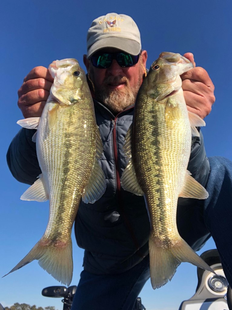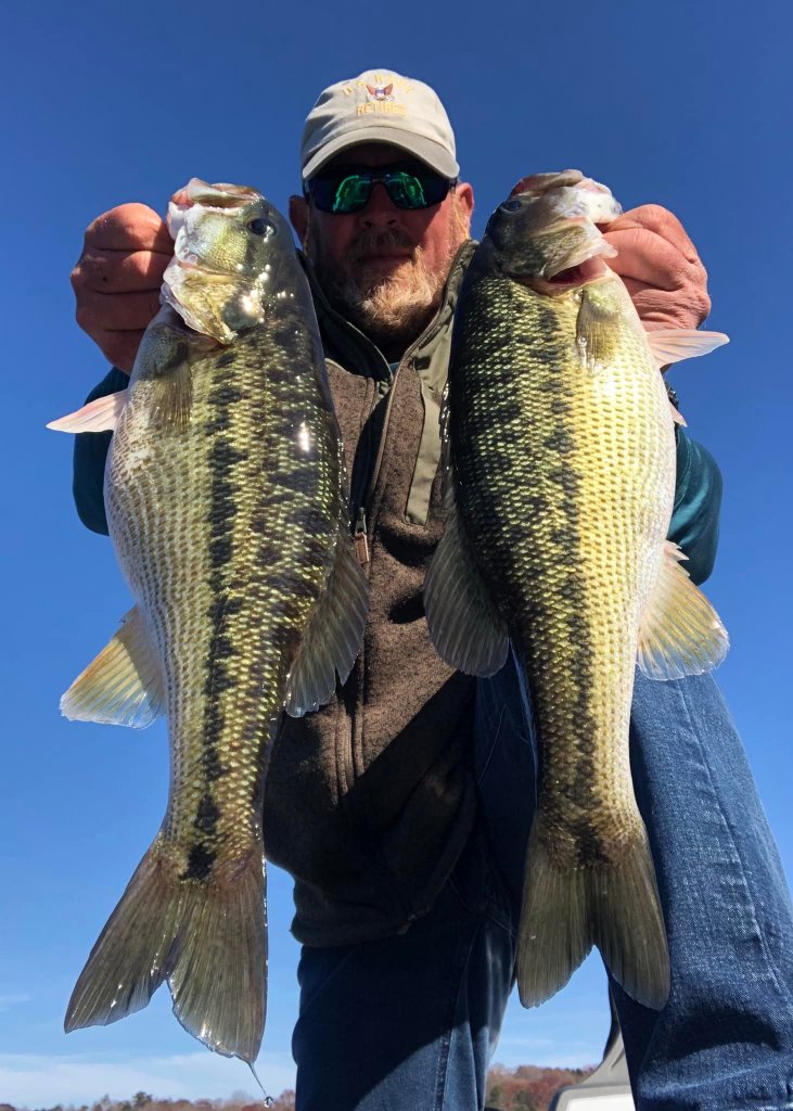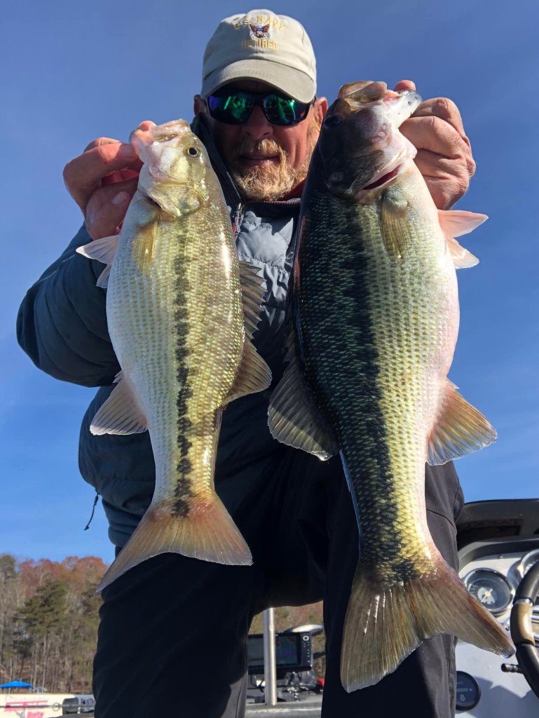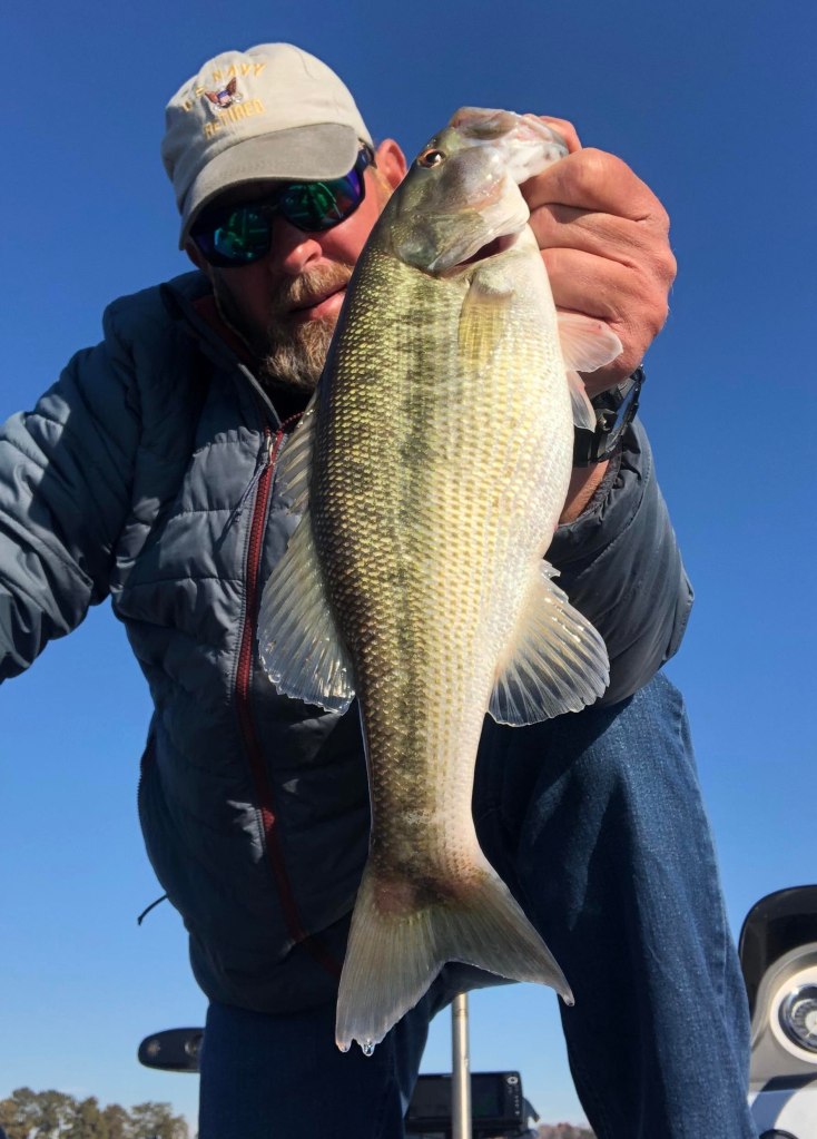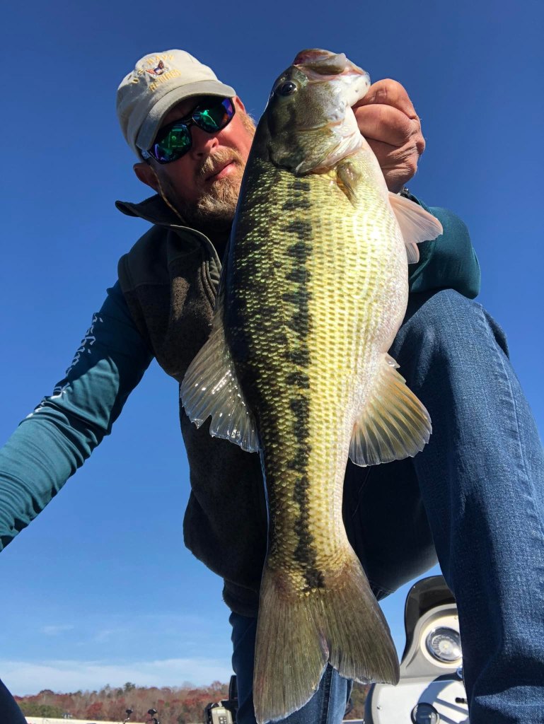 When the water cools these fish have a metabolism that slows as their body temperature drops. The fish is much more lethargic and not very aggressive when it comes to eating and they tend to take on a paler coloration in the deeper water. These fish tend to stay in the comfort of the deep ditch and gorge on the massive schools of bait that seek the same comfort of the depth of the ditch. They spend all day chowing down on the schools bluebacks with a high fat and adequate protein diet with little exercise because of that slower metabolism, these bass are my “Keto Bass” of Lake Lanier.