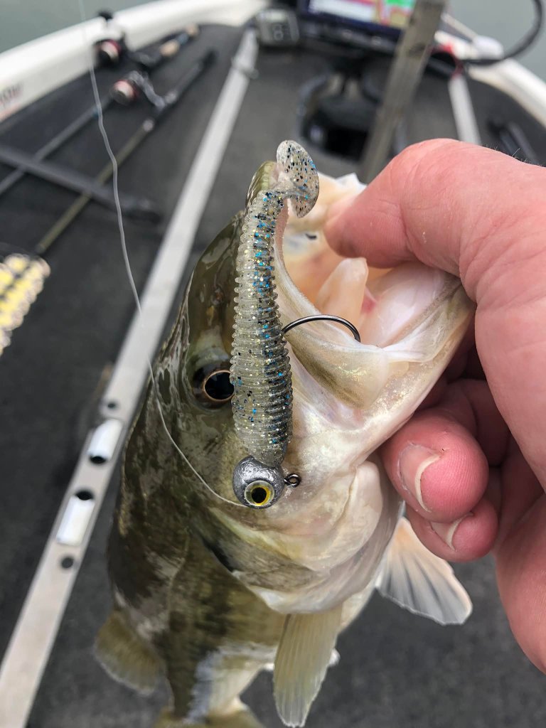 On Monday the bites were few and far between and my time on the water was very fragmented. I fished for a couple hours in the morning and the same amount of time in the late afternoon. In the morning I was mainly throwing the shaky head for my bites in the creek. This time of year I’m kinda partial to the shaky head and I have a lot of confidence in it, especially around the docks in the back half of the creek. There are a lot of docks in the creek that offer a variety of options, from sunny and shallow to rocky, dark and deep. Pick your poison. On Monday my poison was the rocky docks with the shaky head, and I had to fish them slow. It was like watching paint dry to get the bites. Here’s some pictures and videos from my time on the water Monday.