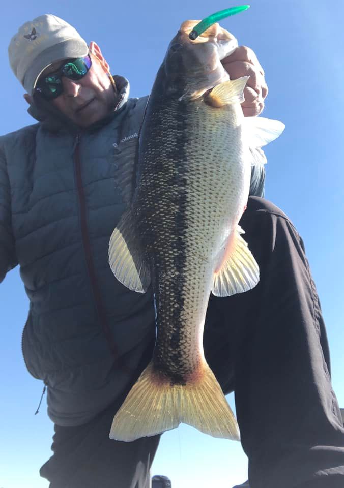 On Tuesday I met my buddy Mike for a few hours of fishing. Mike and I just happened to run across a couple of ditches while out looking for areas to fish shallow up north in YD and in a feeder ditch in 2-mile. It was a ditch I had visited a few years back and found fish. The fish were there again, and we went to town on the deep fish stuck to the bottom. Mike had the magic touch and was dragging a fish up from the depths on every cast with a swimbait while I was popping the occasional fish casting the little spoon for my bites. We basically went from a ditch in YD to a ditch in 2-mile twice and amassed a day of close to 40 fish, with a couple pushing the 4lb mark.