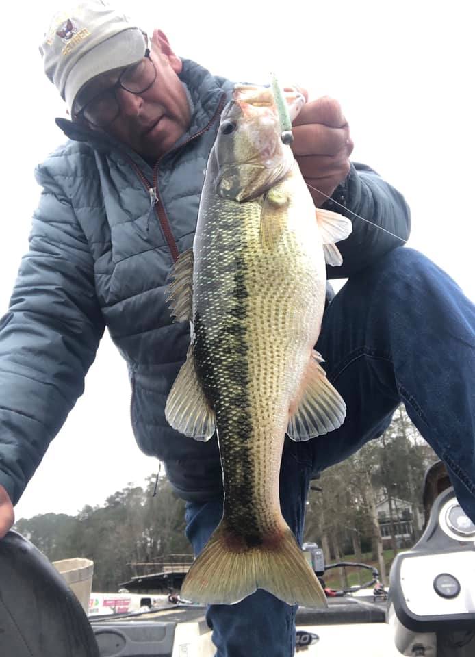 After that trip I had a much better understanding of what the fish were doing, and I was able to build from the scenario we were watching even though I didn’t have the benefit of Panoptix. Fast forward to last year in Feb. when I was cruising the ditches in pockets in a creek. There was one pocket or bay in particular, towards the back, where the very back made a “Y” and there were 2 drainage ditches on either side of an underwater point. The underwater point was kinda blunt at the end with a noticeable ledge or steeper drop-off, where it dropped from a 15-foot tier to another 25-foot tier. The ledge was fairly steep and felt rocky, plus sometimes I could feel my bait free-fall down the ledge a foot or so which told me there were so fairly large rocks around. The two drainage ditches were always packed with bait early in the morning and as the morning progressed, the bait would move out from the shallow backs of the ditches only to be ambushed every morning by the waiting bass on the ledge. Sometimes the wind would blow from the back of the pockets and help push the bait over the ledge for the waiting bass, and other times the wind would blow into the pocket and push bait into the ledge where the bass were staging. If there was no wind, the fish were still there waiting on the bait to move from shallow part of the ditch to deeper water as the sun came up. Either scenario produced fish and the fish were always there waiting on the bait, whether it was coming from the back of the ditches or being blown into the ledge. Some days there were a lot of fish and bait and other times the population of both was minimal.