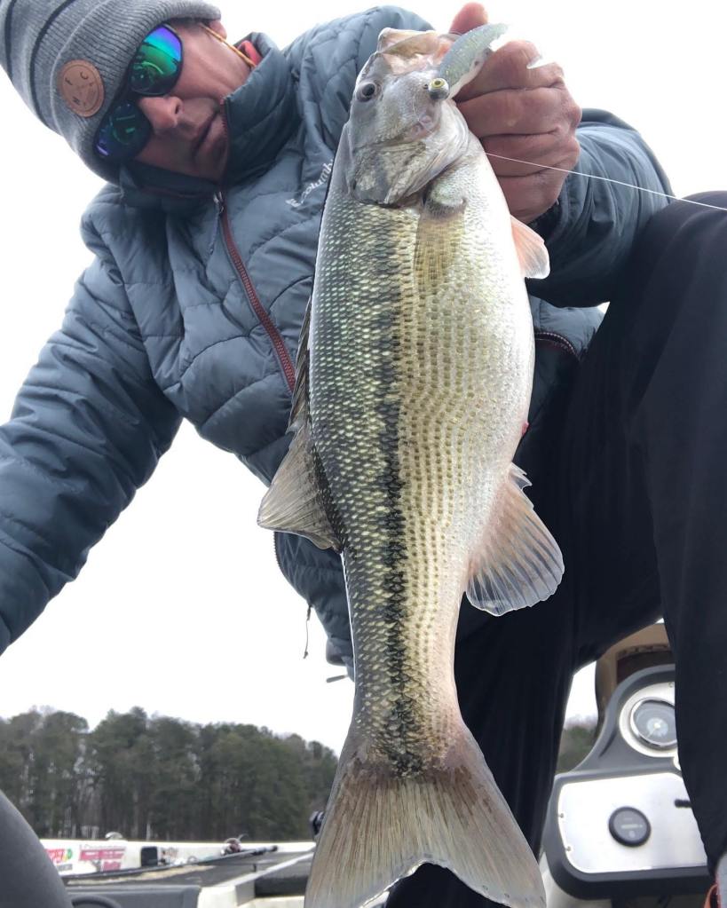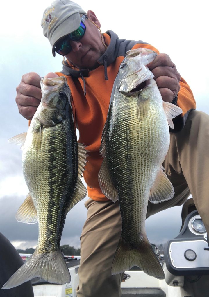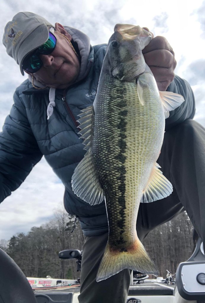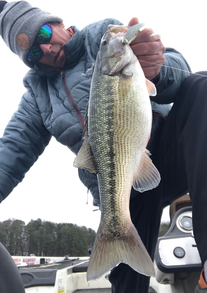 Every once in a while, when I get these bass figured out and I’m sitting on a fastball, that’s when they throw the old curve ball….or slider…or change up or something besides the fast ball. It’s like these bass are messing with the old geriatric fisherman on purpose, playing with my fleeting memory and laughing at me, looking up through the gin clear water. Early this week I had them figured out and I was on top of their game. It was cruising fish on the deep flats in pockets early in the morning and then it was the rocks and docks in the afternoon. They were taking the bait with this pattern on Monday and Tuesday. My baits of choice on Monday and Tuesday were the Damiki early on the 30-40-foot-deep flats and then moving on to the rocks and docks with the green pumpkin shaky head in the afternoon. I looked for the sunny, rocky areas that had wind blowing into it. As far as worm color goes, pick one. If these bass are hungry, they’re going to eat, and I found that the color green pumpkin is just about as good as any of them when it comes to hungry bass and worms. You can get creative with the sizes and shapes too, it’s hard to say what will trigger these bass. Since I’ve surrendered most of my time to the shaky head pattern here lately, I’ve had to evolve a bit because I feel like the fish are evolving along with the pattern.
