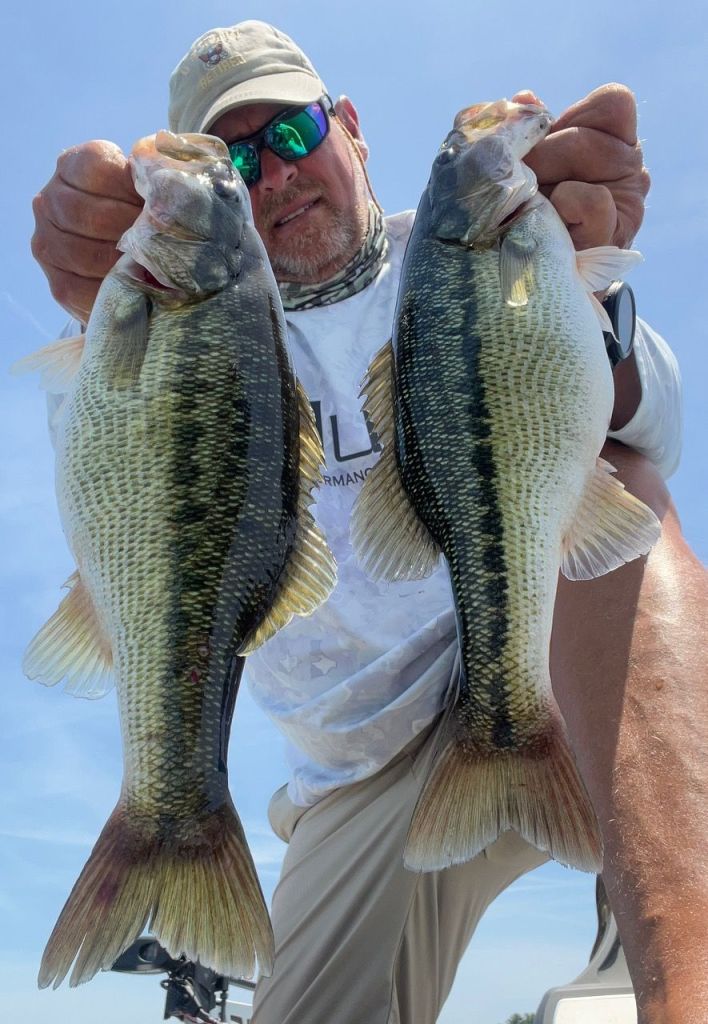 First and foremost, I have to brag on my electronics this week. There are certain times of the year I can get by without electronics but for the next few months my Humminbird units are essential for the way I’m fishing. For the next few months brush and structure in the 20–35-foot range is what I will be targeting and boat position in relation to the brush or structure is crucial for my success. My Humminbird mapping is what I’m relying on to get the boat in position in relation to the brush. A lot of times, if there’s wind, I want to position the boat up wind of the brush and make my casts down wind, using the wind to help carry the little spybait or topwater bait on a long cast. Being up wind and pulling a topwater bait against the grain also provides more surface disruption. I really need good mapping to target summertime fish in or around the brush and my Hummingbird’s get the job done every day.