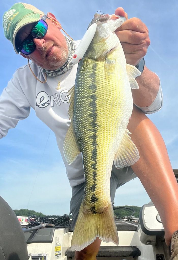 Today it was about 75% spybait and maybe 25% drop shot but with no wind today the spybait was the best choice. I probably shook off 5-10 smaller fish boatside and had a couple close to 3lbs but after catching this one the 2-3’s looked like dinks. It was a great fish to end the week on and I only used 3 baits this week. All pictured above. It’s typical summer patterns for now. Water temps are in the mid to upper 80’s, the water level is about a foot below full pool and the corps is generated during peak power usage in the afternoon and evening. This weekend is the Poker Run on the lake and there a lot of very big and fast boats out there right now. Be safe this weekend!