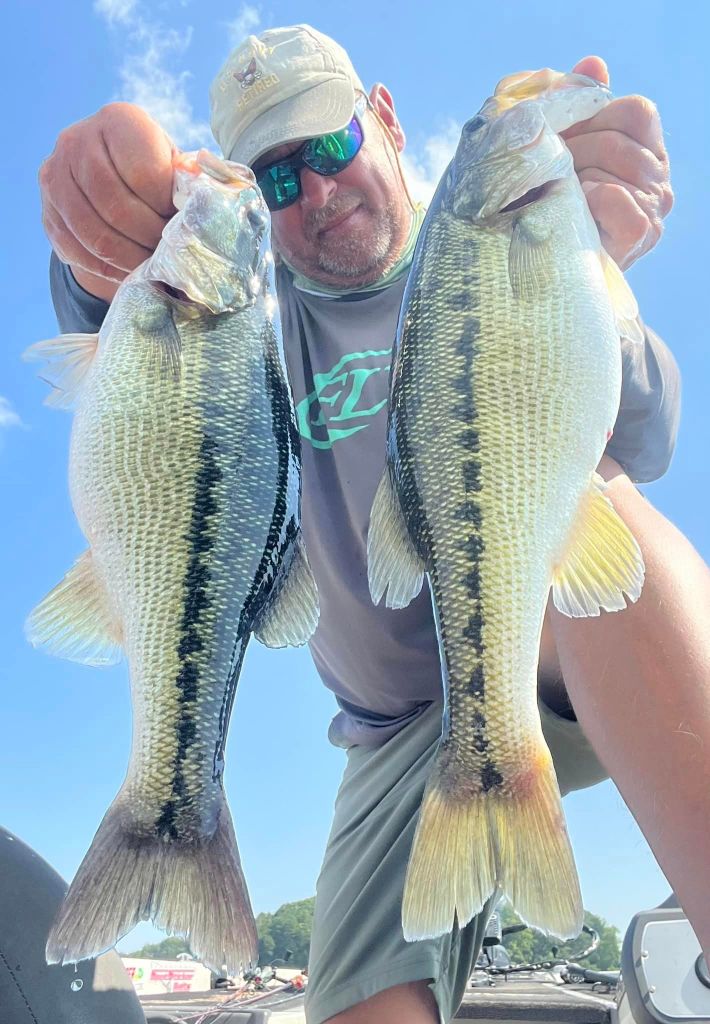 My guess is that by this time next week the topwater pattern will be even better than yesterday and we’ll be seeing some dryer and cooler weather. Water temps are in the low to mid-eighties right now and the corps is generating off and on in the afternoons. The lake came up a bit this week before going back down and we are 2.3 feet below full pool. We should see a different lake very soon so get those topwater baits on the deck! Here’s a few memories from my week. Good luck and try and stay dry if you’re out this weekend, the wet stuff is coming up from the gulf as we speak.