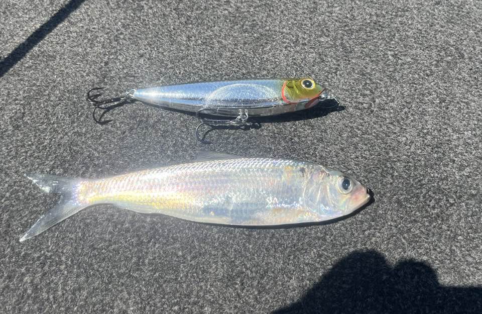 The topwater this week has been pretty good, and timing is the main thing with the active fish right now. I’ve found that there are very few herring feeders schooling well in the early morning hours but as the sun gets high up in the sky the bluebacks rise to the surface in big numbers and the bass start the topwater routine. Every year is different and this year it’s been about the chrome and the flash.