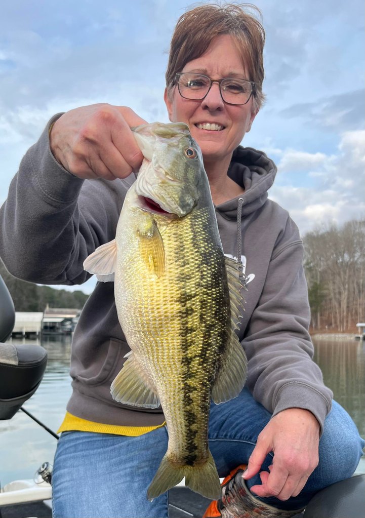 I fished every day this week and pretty much ran the same milk run. Basically, my milk run is the best way to monitor the progress of the fish. Inevitably, they will show up in certain places and by me checking these places every day, it tells me what to look for and where to look. I don’t need forward facing sonar to find the fish and at this point, as my contour mapping is my biggest help. I didn’t really fish any ditches this week and my main focus was rocks and docks. For me the dock bite is steadily getting better, and more fish are starting to relate to the warmth of the docks on sunny days. Yesterday evening I picked up Lisa at 5pm and we went out and ran docks for an hour. In that hour we caught 3 very nice bass just throwing worms around a little stretch of dock. This was Lisa’s first bass of the year and my last bass of the evening.
