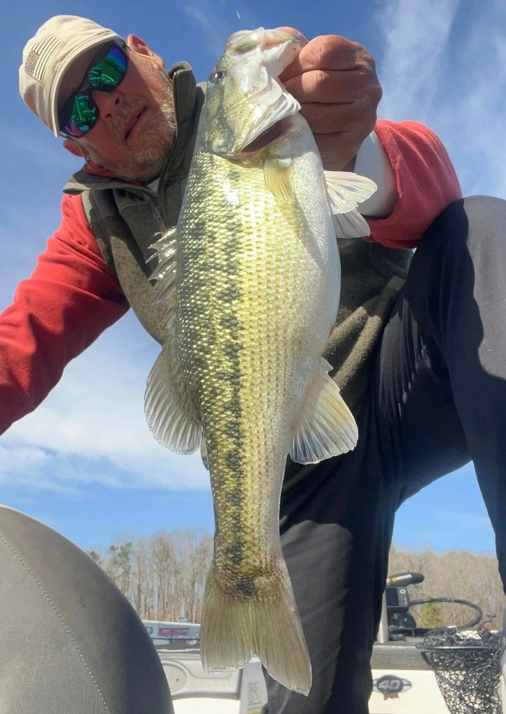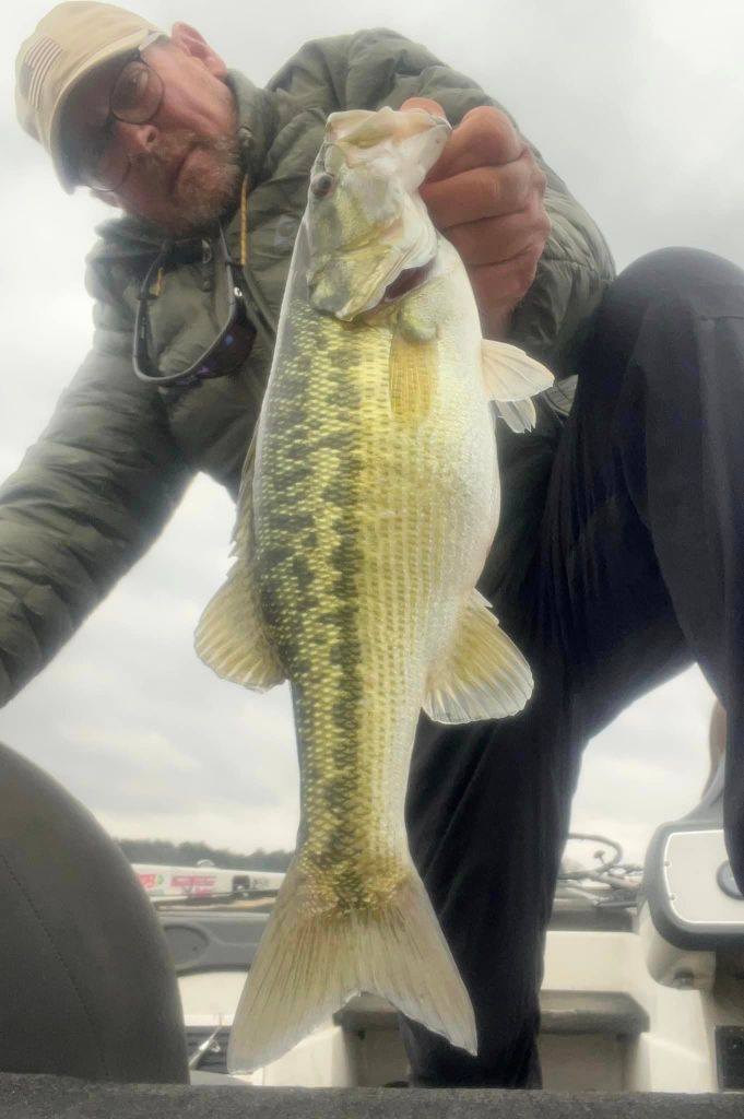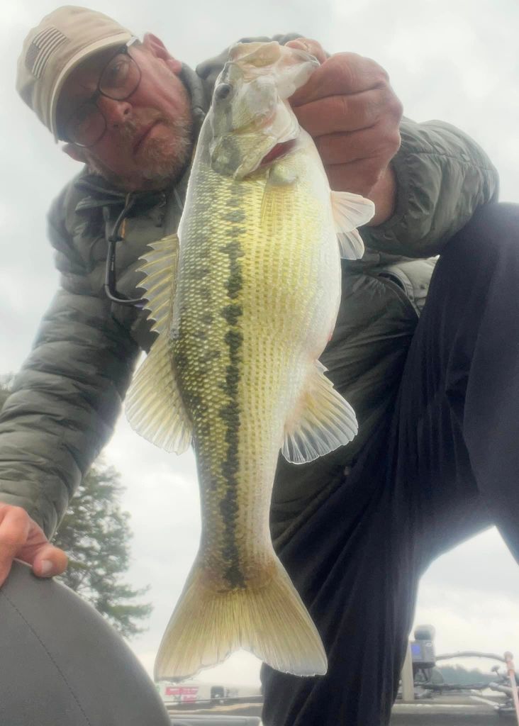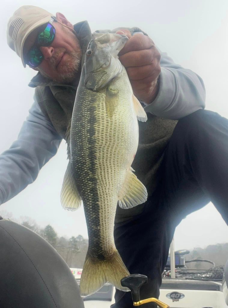 I was back on the lake Monday morning with some nice weather to greet me. I was looking forward to this week because I know that the bite is getting better and better. We’re approaching the March full moon and it seems like this moon phase is kicking these Lanier bass into high gear this week. Once again, I started with throwing the little swimbait on a five-count drop and slow rolling it but still no takers, so it was back to the worm. For me it’s about location and percentages right now. I have this memory bank of locations where I’ve caught fish in the past plus I’m always adding to my locations as well as dropping some. More and more bass are prepping for the spawn and the feeding windows are opening wider and wider around the lake. The key is finding where the bass are and that could be anywhere and nowhere at times. Late last week we were having a blast with fish around docks but this week they’ve been nonexistent around the docks and loading up on the shorelines. I’ve found fish in the most inconspicuous and unusual places and found a lack of fish in the places I’ve expected to find them….if that makes sense. Nonetheless, this time of year it’s like “blind squirrel” fishing and if I search around long enough, I’m bound to find a nut or two. Targeting secondary points and rocky stuff has been the deal for me this week and right now some of the biggest girls around are putting on the feedbags for the spawn. This week I used the wind to my advantage, and I targeted larger flats and points in the wind using my Spot Lock and fan casting method. I looked for points and flats that had wind blowing into them and I targeted those points. I just feel like the fish feel more comfortable feeding around windblown points and although it may be uncomfortable fishing in the wind, it can be very rewarding. Such was the case on Monday when I upped my personal best for the year when I caught a very hefty 5.3oz on a windblown secondary point. The fish had apparently had success jumping and spitting baits in the past because it’s all the fish wanted to do and keeping her down was a task. The hook held and I gotta brag on the Cast Co. braided line. It’s the real deal when it comes to holding these fish. Here’s a pic of my biggest this week and a few others from Monday.