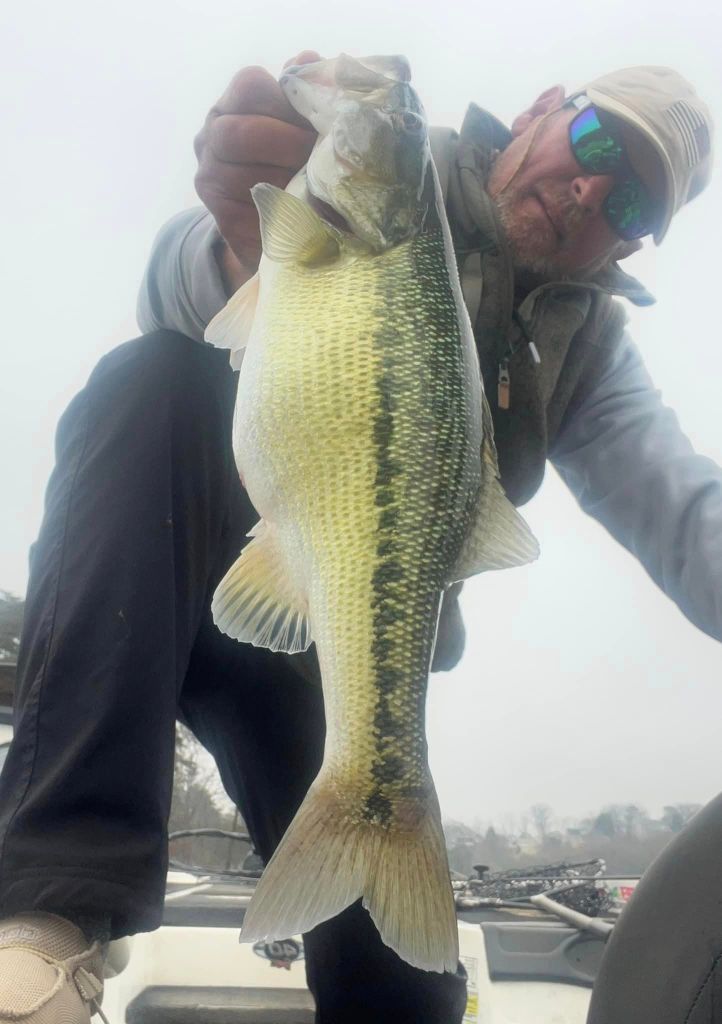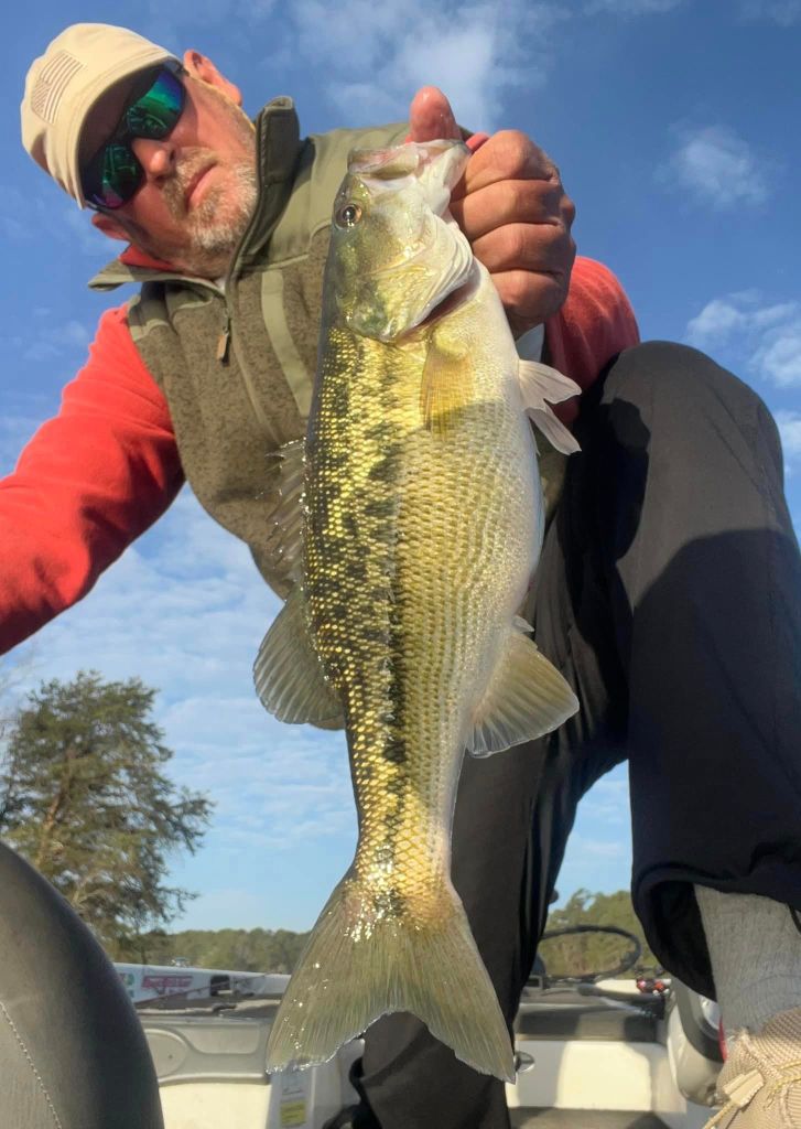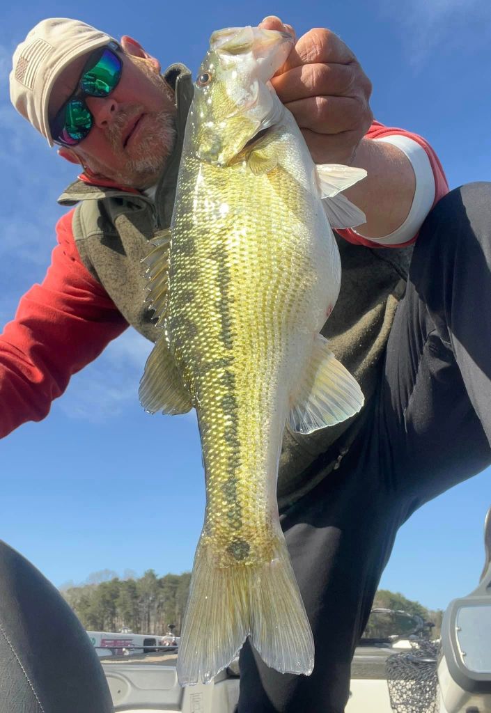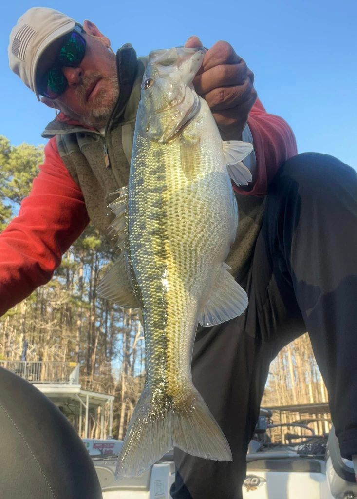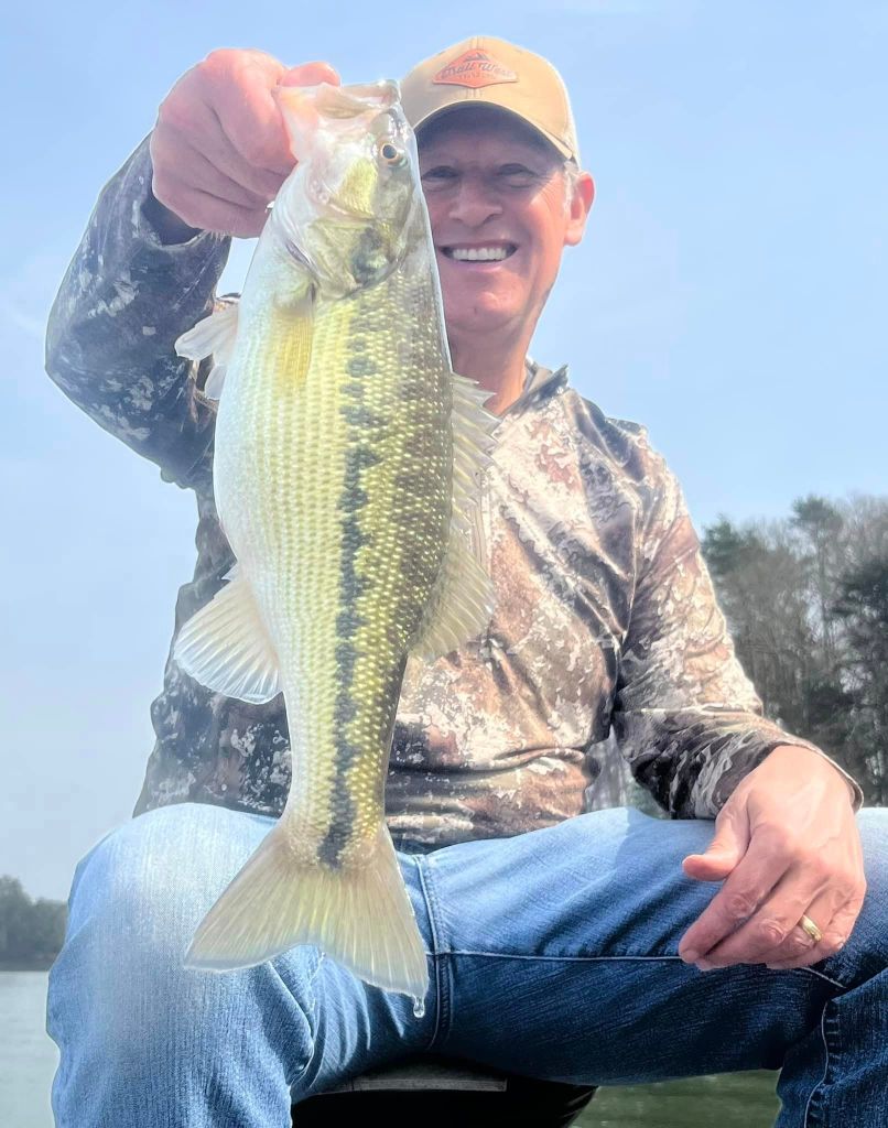 I was back on the lake Monday morning with some nice weather to greet me. I was looking forward to this week because I know that the bite is getting better and better. We’re approaching the March full moon and it seems like this moon phase is kicking these Lanier bass into high gear this week. Once again, I started with throwing the little swimbait on a five-count drop and slow rolling it but still no takers, so it was back to the worm. For me it’s about location and percentages right now. I have this memory bank of locations where I’ve caught fish in the past plus I’m always adding to my locations as well as dropping some. More and more bass are prepping for the spawn and the feeding windows are opening wider and wider around the lake. The key is finding where the bass are and that could be anywhere and nowhere at times. Late last week we were having a blast with fish around docks but this week they’ve been nonexistent around the docks and loading up on the shorelines. I’ve found fish in the most inconspicuous and unusual places and found a lack of fish in the places I’ve expected to find them….if that makes sense. Nonetheless, this time of year it’s like “blind squirrel” fishing and if I search around long enough, I’m bound to find a nut or two. Targeting secondary points and rocky stuff has been the deal for me this week and right now some of the biggest girls around are putting on the feedbags for the spawn. This week I used the wind to my advantage, and I targeted larger flats and points in the wind using my Spot Lock and fan casting method. I looked for points and flats that had wind blowing into them and I targeted those points. I just feel like the fish feel more comfortable feeding around windblown points and although it may be uncomfortable fishing in the wind, it can be very rewarding. Such was the case on Monday when I upped my personal best for the year when I caught a very hefty 5.3oz on a windblown secondary point. The fish had apparently had success jumping and spitting baits in the past because it’s all the fish wanted to do and keeping her down was a task. The hook held and I gotta brag on the Cast Co. braided line. It’s the real deal when it comes to holding these fish. Here’s a pic of my biggest this week and a few others from Monday.