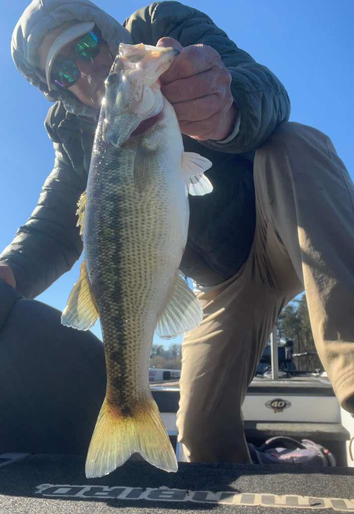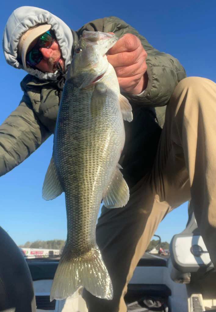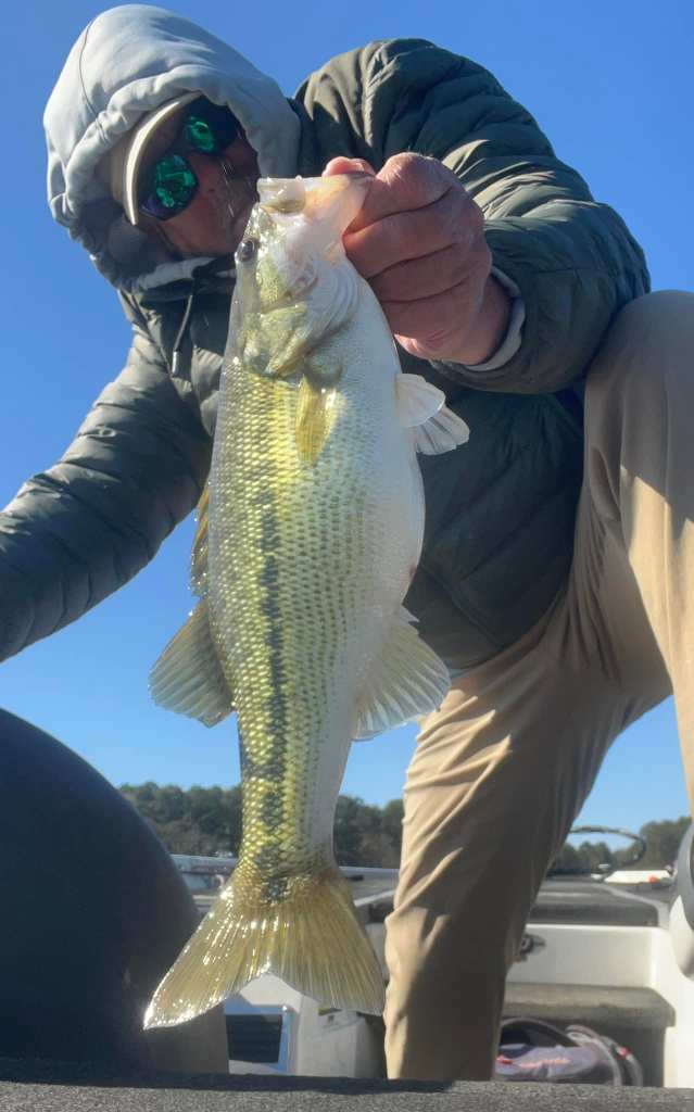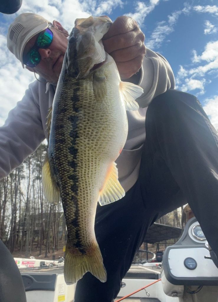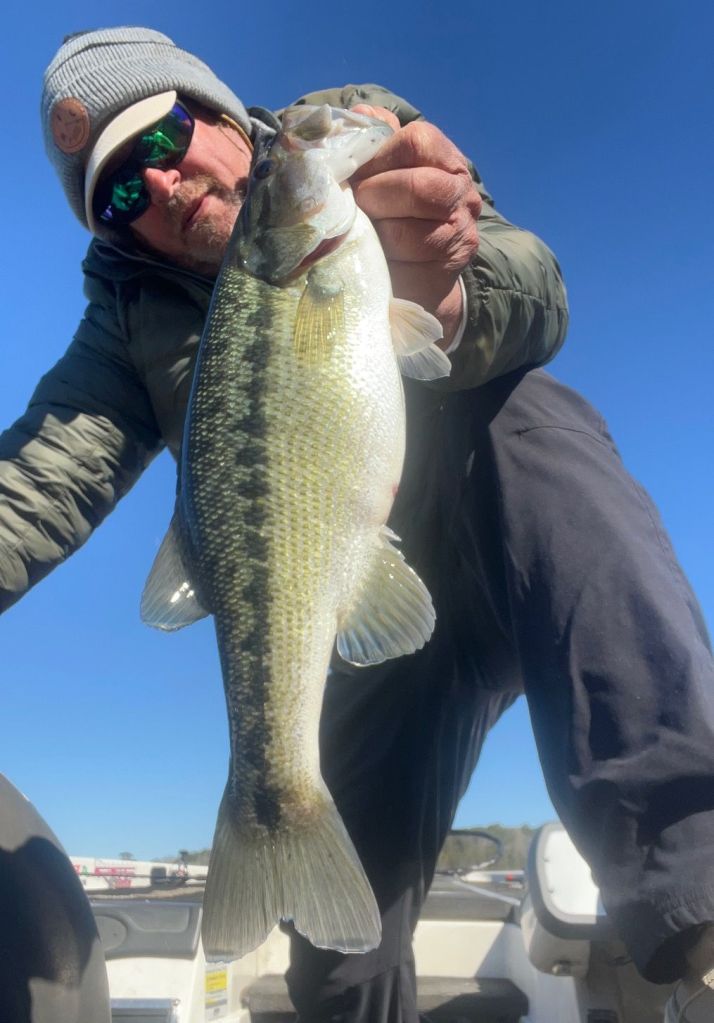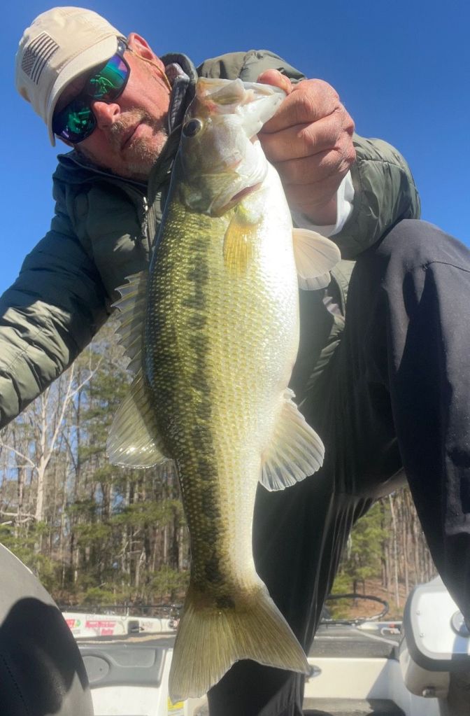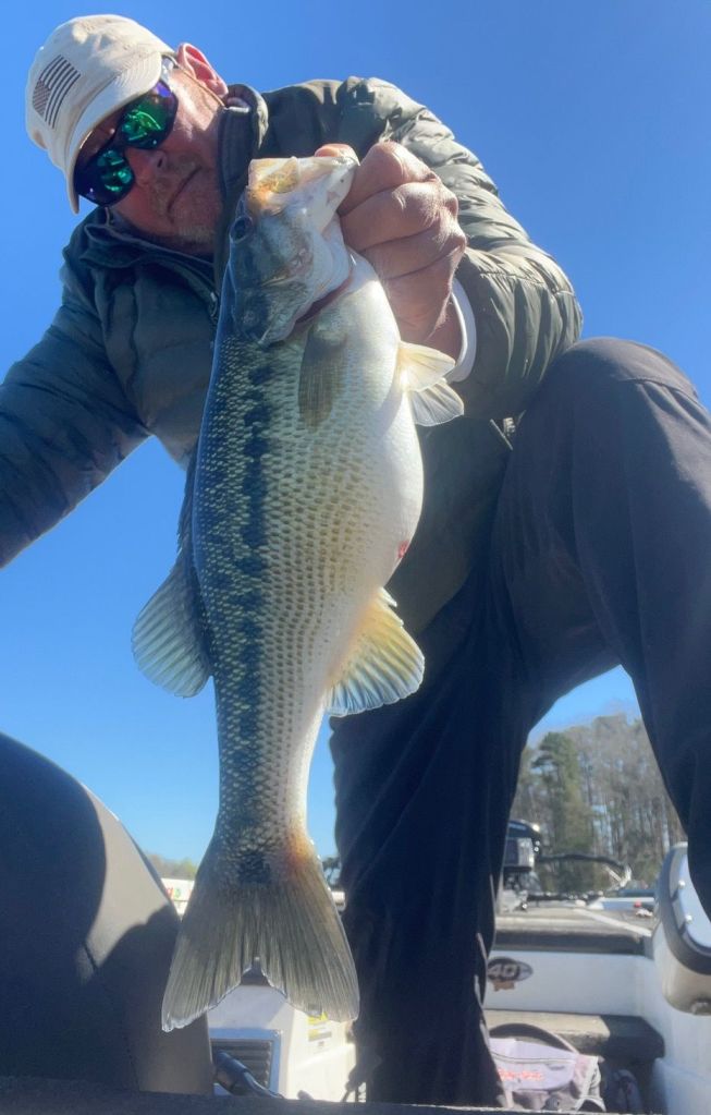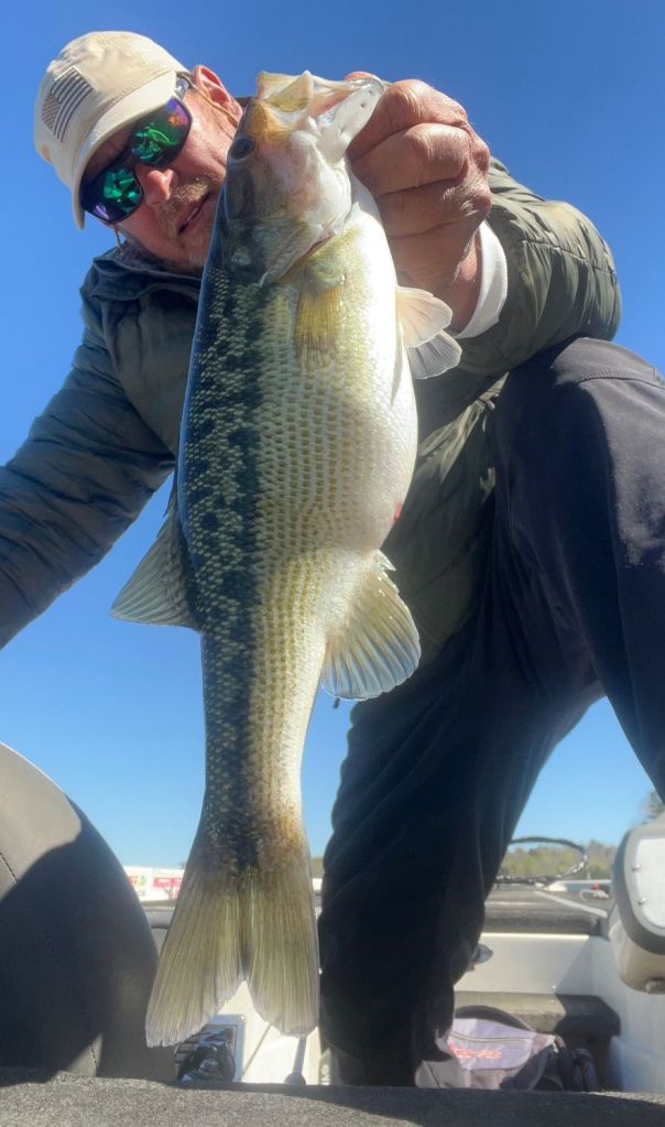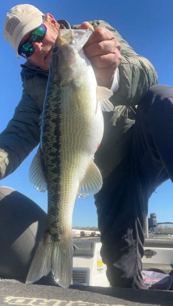 Last night I couldn’t help myself at our weekly taco Thursday gathering. At the restaurant there were several tv’s but only one that I could barely see had the NCAA basketball tournament on and every once in a while, I would glance a look at the game and the scores. I may not be diligent about following divisional play during the regular season, but March Madness has always piqued my interest. At the same time another March madness has piqued my interest and that’s the March madness of finding and catching these spotted bass. So this week was the polar opposite of last week on the lake…..literally the polar opposite. Last week we had the mild temperatures, and the fish were basking in the warmth of the shallow water, eating their crawfish and having a good ole time then along comes mother nature with wintertime again.