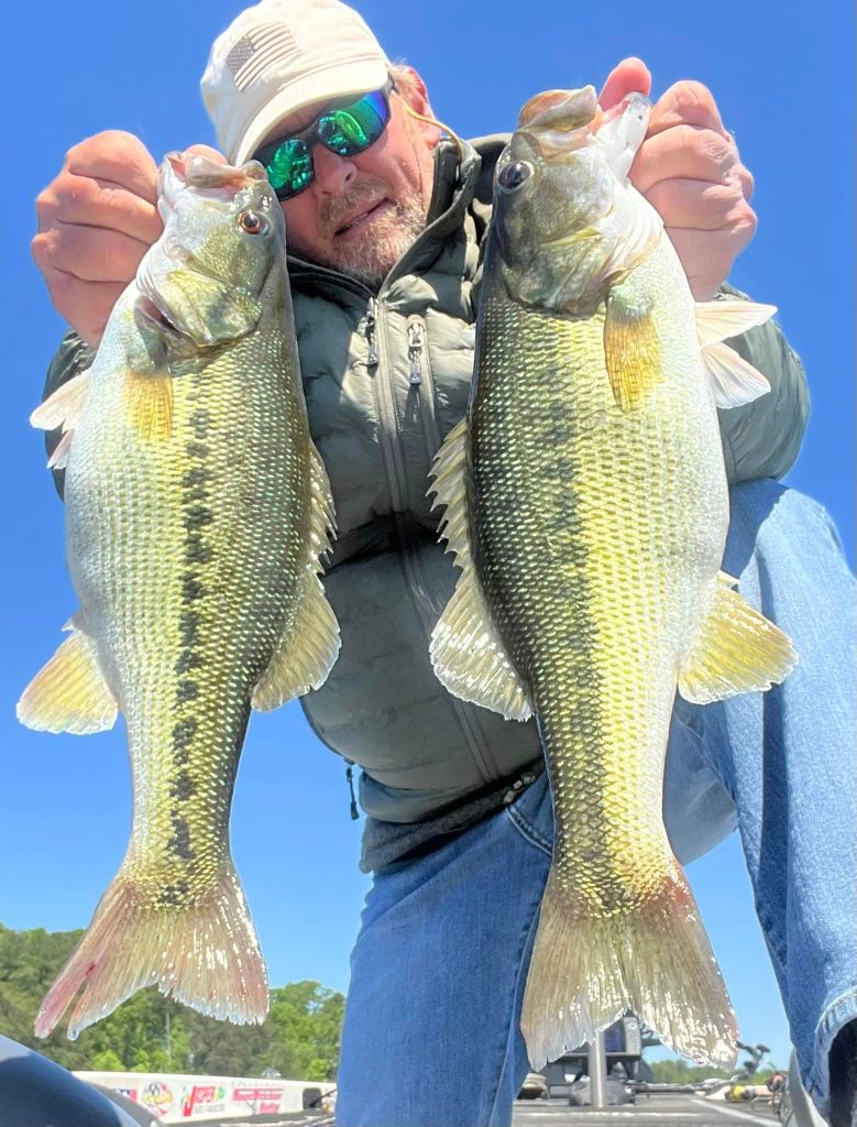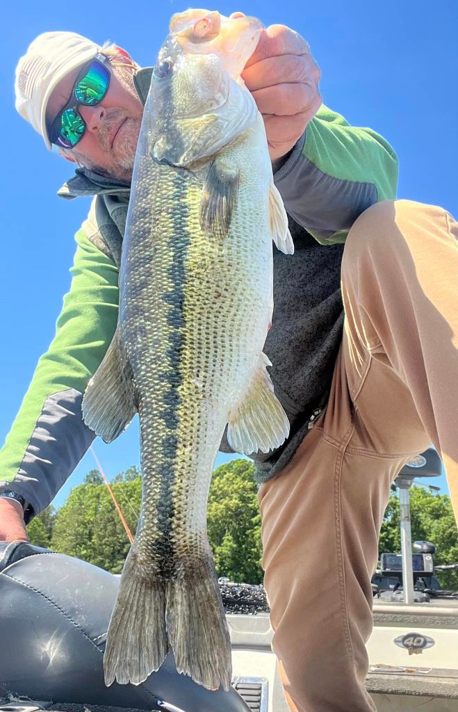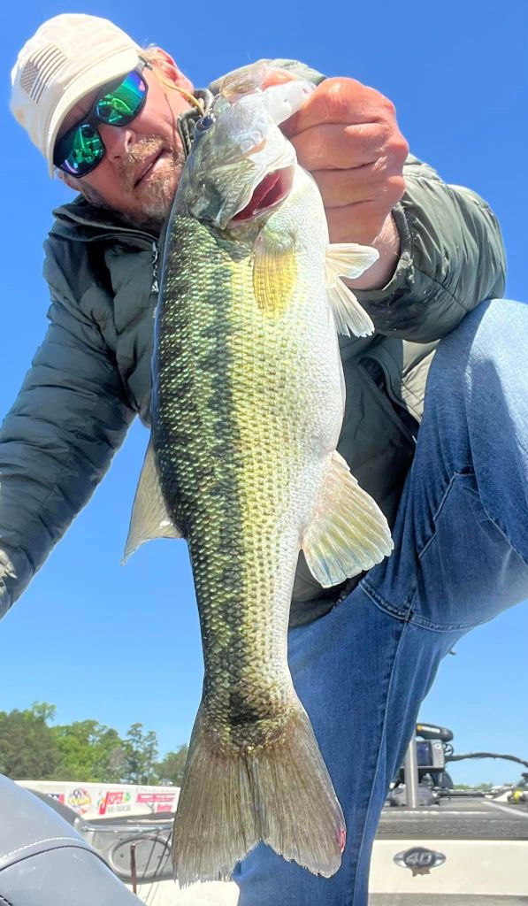 It’s usually a process this time of year on the south end. The fish are a moving target and success usually comes from trial and error during the post-spawn/recovery period. This is the time of year that the graveyard of failed lures on the floorboard of the boat can be rather large, and the fish can look rather ragged and tore up when you do finally catch them. Right now, the fish are getting back into the swing of things and starting to feed again after a long spawning period of up and down weather. I’ve witnessed some bass still in the act of spawning in shallow water this week and I’ve witnessed a bunch in transition to structure out in a little deeper water where they’ll make their summer home. I’ve seen some great surface schooling on bait early in the morning over deeper water this week and I’ve also seen sporadic shad spawning in very shallow water this week. There are plenty of big Blue Heron wading along the shoreline, looking for unsuspecting shad and stripers are on the hunt and cruising the same shallows looking for the shallow spawning shad also. It’s a time of year that you can literally pick your bite because a lot of tactics are now in play and fishing is very forgiving.