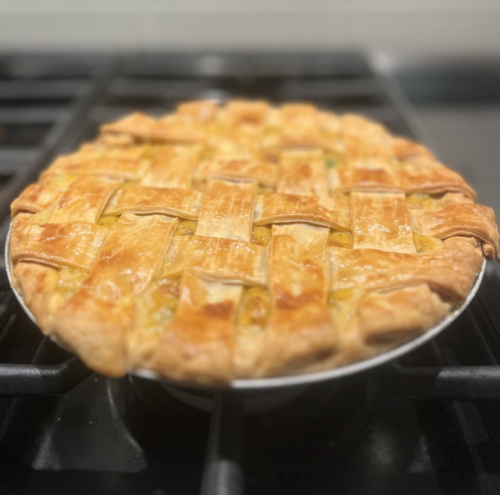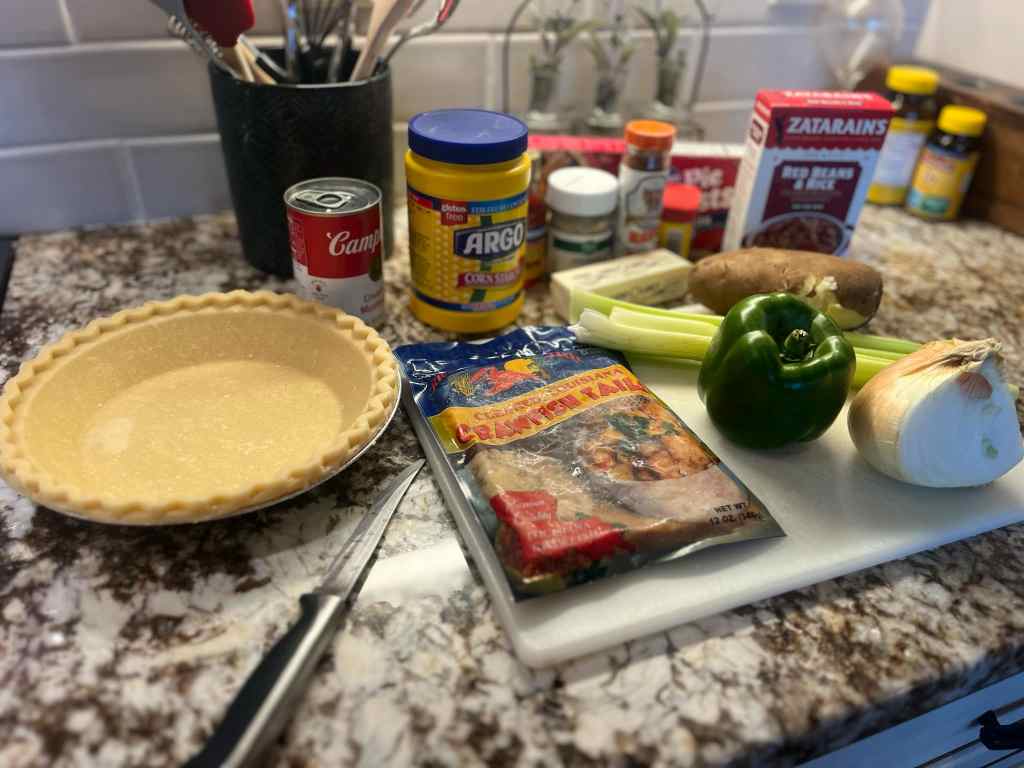 Once I put the top crust on and brush it with egg wash, I bake the pie for about 30 minutes or until the crust is turning brown. I like to serve it with red beans and rice and my southern potato salad. Here’s some pictures I took of the process.
