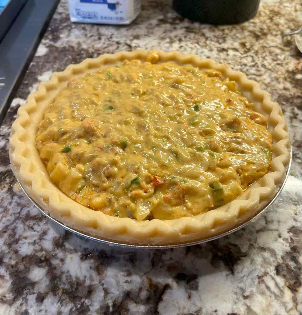 It was probably close to 30 years ago when I had my first taste of a crawfish pie. Prior to that first taste I was a bit skeptical of a pie that wasn’t sweet. Pie was supposed to be sweet and the thought of putting seafood in a pie was beyond me. Don’t get me wrong, I’ve ate my share of chicken pot pies over the years, but I never dreamed you could use seafood in a pie. My grandmother used to make homemade minced meat pies out of leftover pot roast, but the pies she made were still a bit sweet with sugar and raisins added to the finely ground roast. Minced meat and rhubarb pies were a favorite of mine at my grandmother’s house growing up so I figured “what the heck”, might as well add a mudbug pie to the list of weird pies I’ve eaten.
