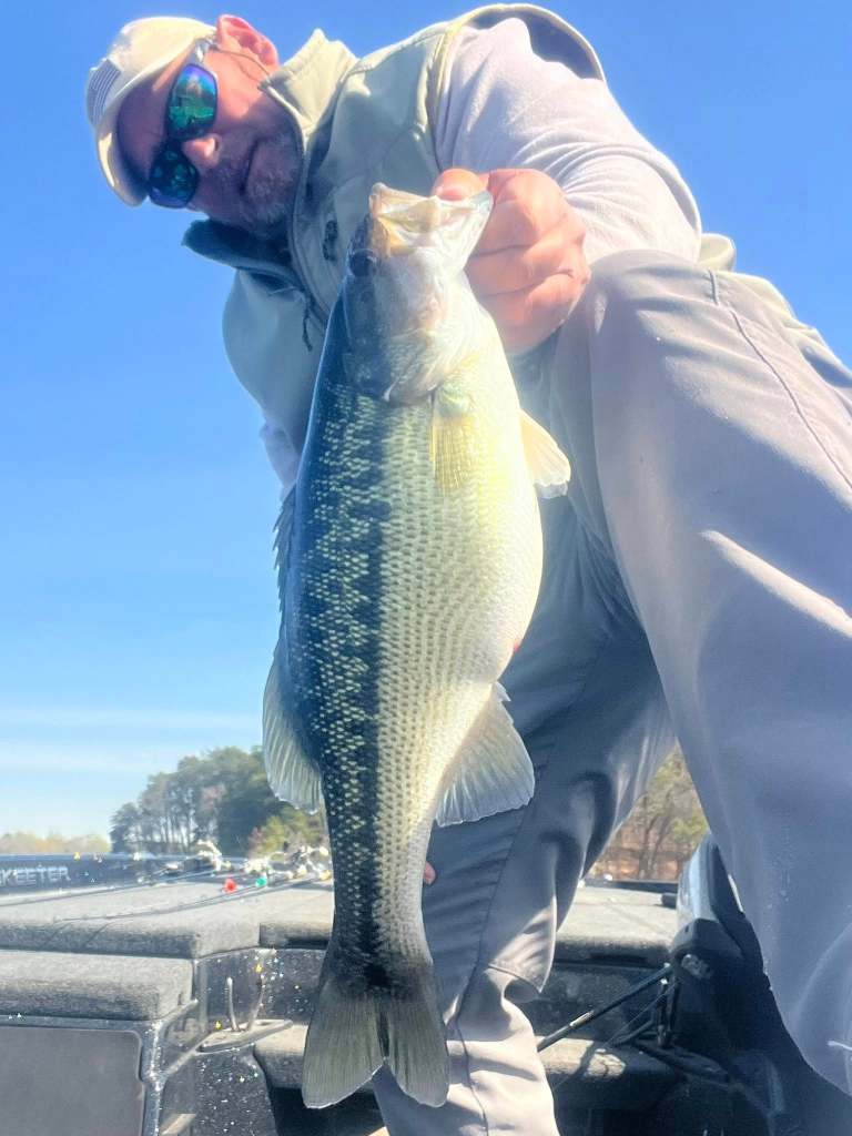 If it’s spring and the wind is blowing, you’d better have a spinnerbait on the deck. Yesterday in the early afternoon the wind picked up and it provided me with plenty of options for my 3/4-ounce SpotSticker Baits Mini Me. Right now, I don’t use a trailer for the bait, and it does just fine without one. It’s pretty simple with the spinnerbaits right now. Just find a wind point and start chunking it around. I like to spot lock up wind and make my casts downwind for the extra distance on the cast. I follow it up with a 10-15 count depending on the depth I’m fishing. If I’m fishing shallow, I like to keep it just above the bottom and for deeper applications like over brush, I’ll give it a 10 count just to get it down below the surface a bit. Yesterday I caught some nice ones with the spinnerbait out on windy points, but I broke it off in the top of a brushpile after success on a few points. I don’t like to use Livescope for the spinnerbait because I like the surprise I get from the fish slamming the bait unexpectedly. After I broke off the spinnerbait, I decided to pull out one of my all time spring bait favorites, but the spinnerbait on windy points is a must right now in the afternoons.