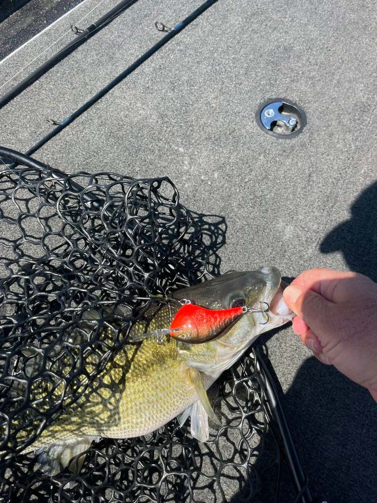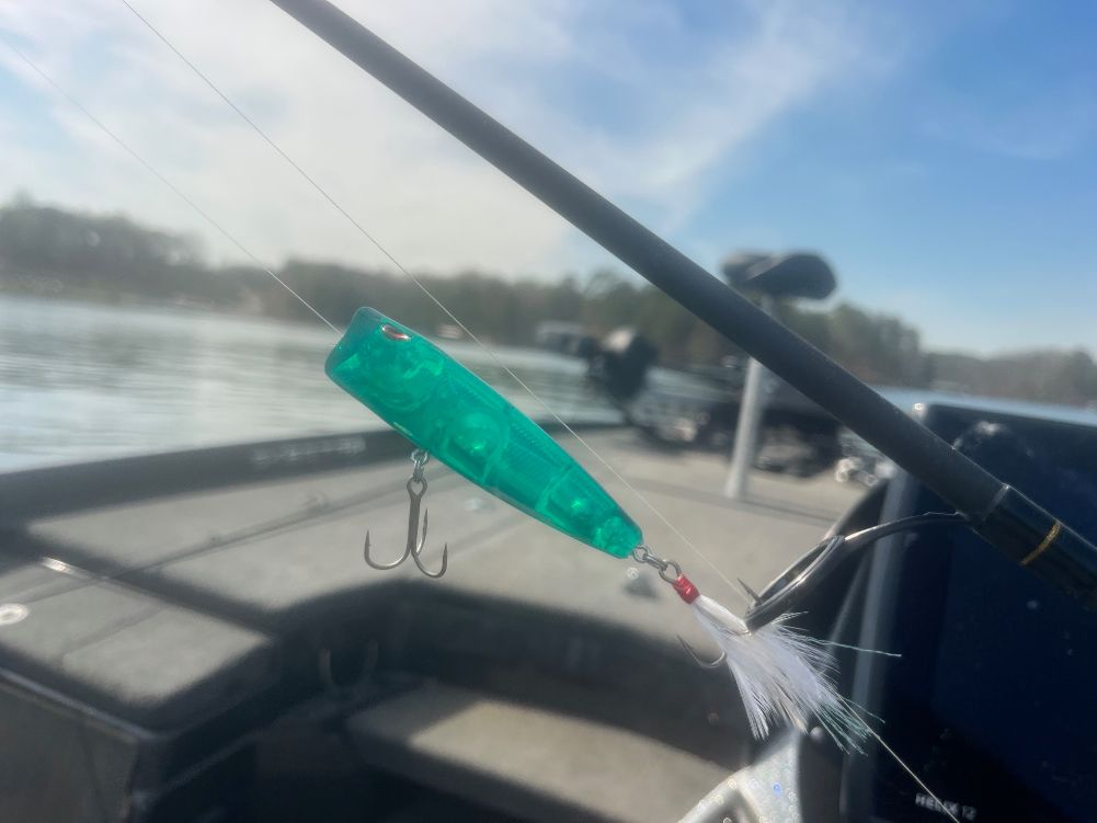 This week was about as short as it gets for me. Yesterday was the only day that I got an early start and stayed out till mid-afternoon this week. I fished a few hours earlier in the week, but I really didn’t get a handle on things until today. The way my morning started this morning was with some topwater at dawn after seeing a few surfacing fish on a point in the creek. They were shallow and chasing bluebacks on the surface, so I tied on the Spro Epop in the emerald color, and it didn’t take long till a fish came completely out of the water, blowing up on the popper. It was my first topwater fish for 2025 and it was on the emerald color. It reminded me of catching fish in late March years ago on the old emerald popper. I generally use the popper if I see surfacing fish but it’s also a good idea to start throwing it around those shallow pockets very early in the morning right now. Yesterday I found that the fish were actively feeding on top for about the first hour of sunrise. The popper bite will improve over the next couple months but it’s a good idea to have it tied on and ready.