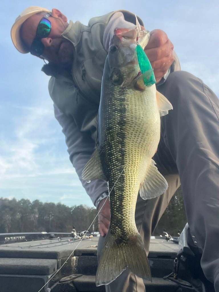 Right now the lake is holding steady at just above full pool and the corps is only moving water a few hours a day. Water temps are still a little on the low side for this time of year but the lake is warming and approaching 60 degrees right now. Above are 6 baits that I use this time of year with great success on Lanier. I could rattle off another 4-5 baits that I would use in addition to these six but these are 6 of my favorites and the ones I used with success yesterday. Here’s a few more fish from my week.