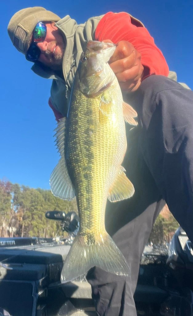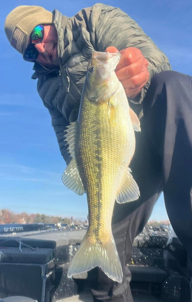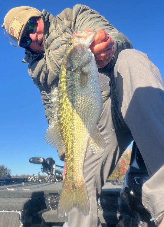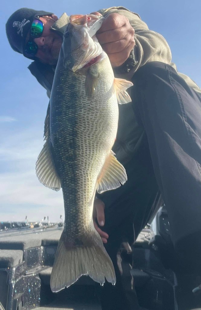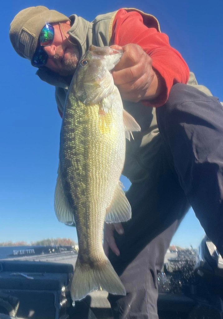 I’ll bet you’re wondering about that catchy title, but that’s about what it boiled down to this week. I did incorporate more Livescope to locate fish, mainly when using the crankbait, and I found it to be pretty amazing watching the fish react to the crankbait as it got close to them. Earlier this week, I was watching my crankbait swim along using Livescope, and as the crankbait swam along, fish started coming up off the bottom, one right after another, in a straight line towards the crankbait. It was almost like watching a hatching of termites as they all leave the ground nest; the fish were appearing from the same little area on the bottom and swimming up to check out the crankbait. Inevitably, as the group of bass spectators gathered around the crankbait, one from the group would break camp, as if to say, “I’m your Huckleberry,” and attack the crankbait. I caught a lot of Huckleberries this week, and the crankbait prevailed again as my favorite bait for the week.